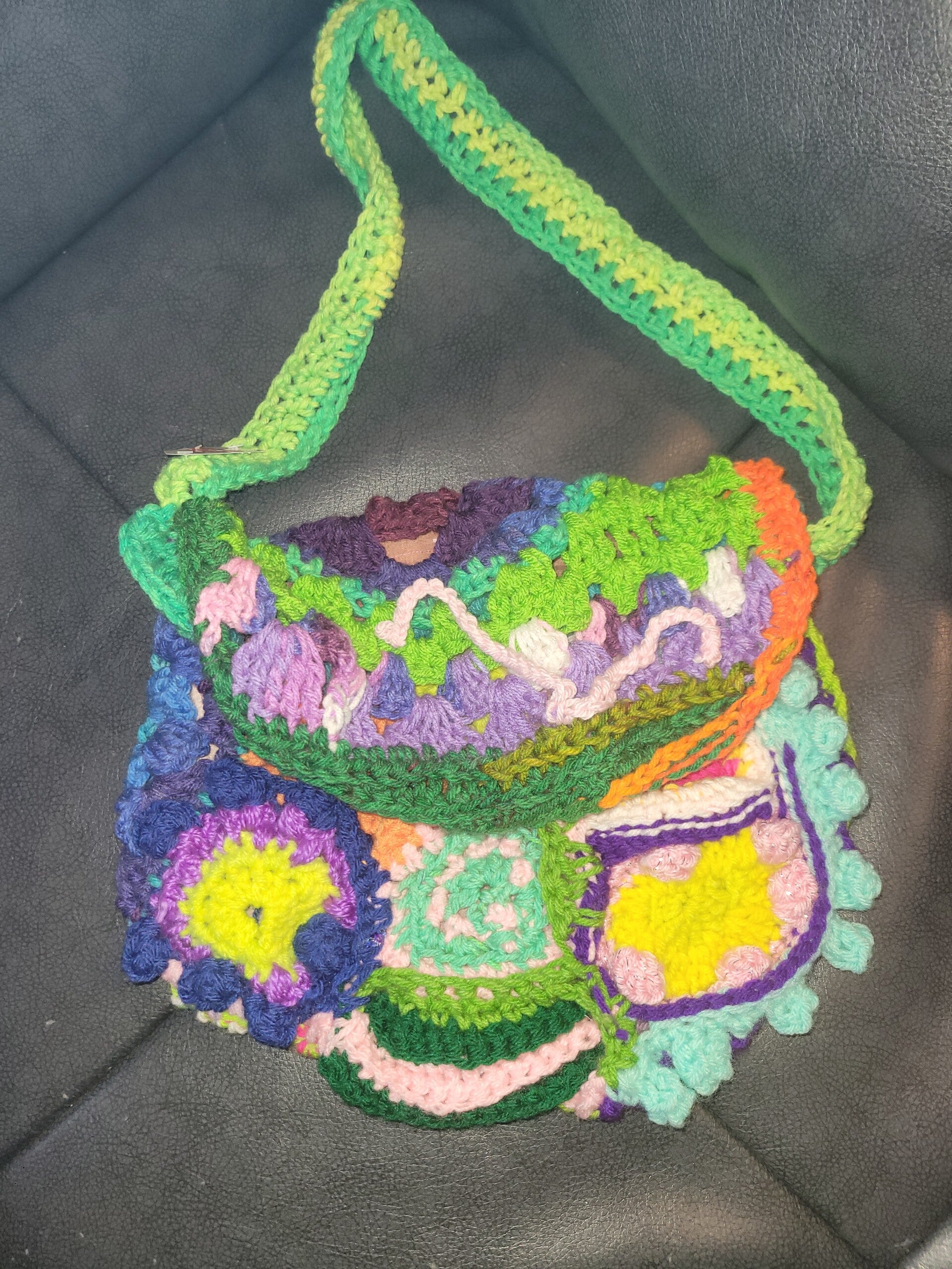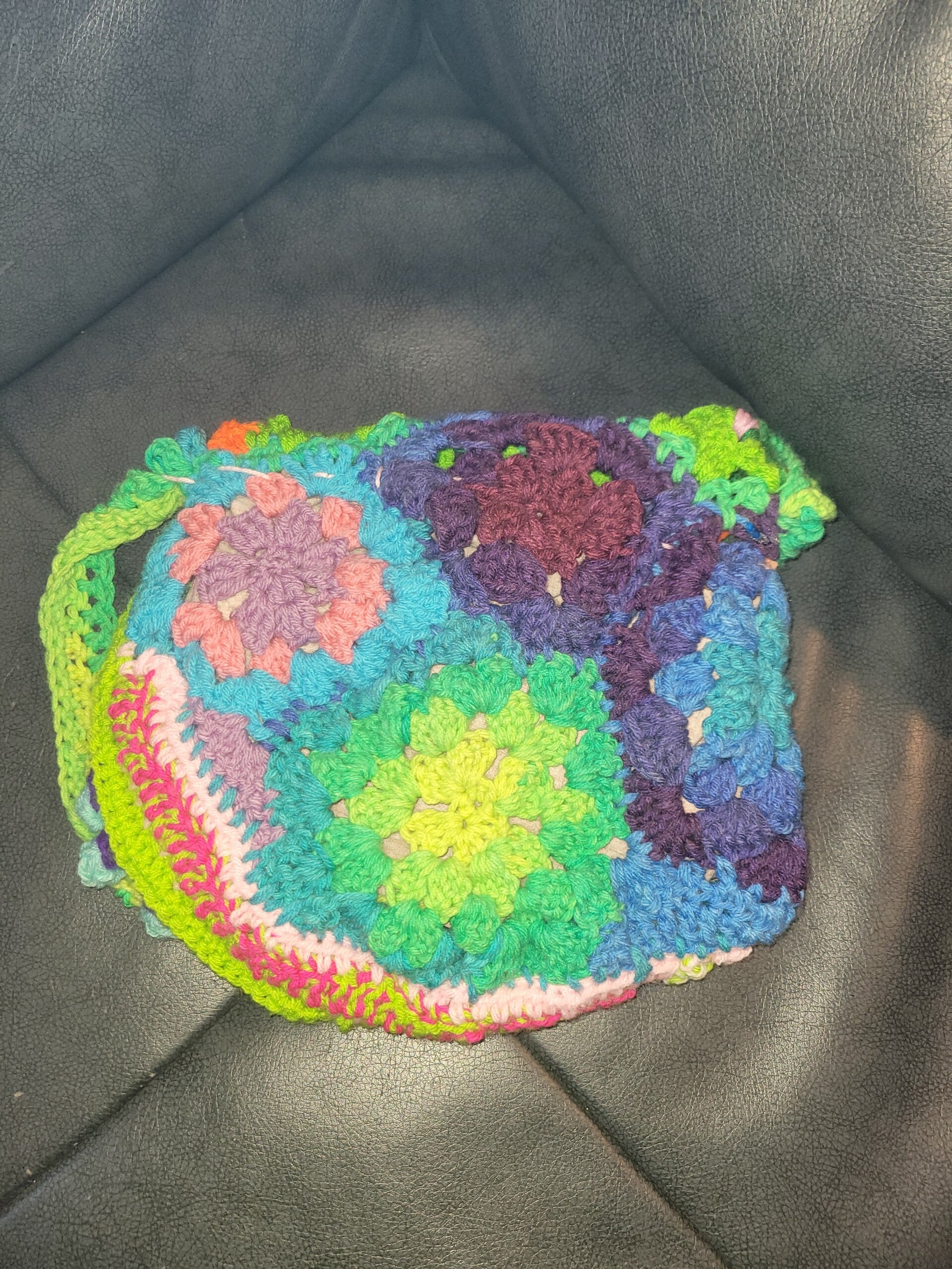 This one-of-a-kind mermaid-inspired crochet bag is a vibrant celebration of ocean magic and free-spirited creativity. Handcrafted with a mix of colorful motifs, textured stitches, and playful details, it features sea-like hues of green, purple, turquoise, and sunny yellow. The adjustable crochet strap adds comfort and versatility, while the patchwork design makes every angle a visual delight. Perfect for festivals, beach days, or anyone who loves whimsical, mermaid-core style