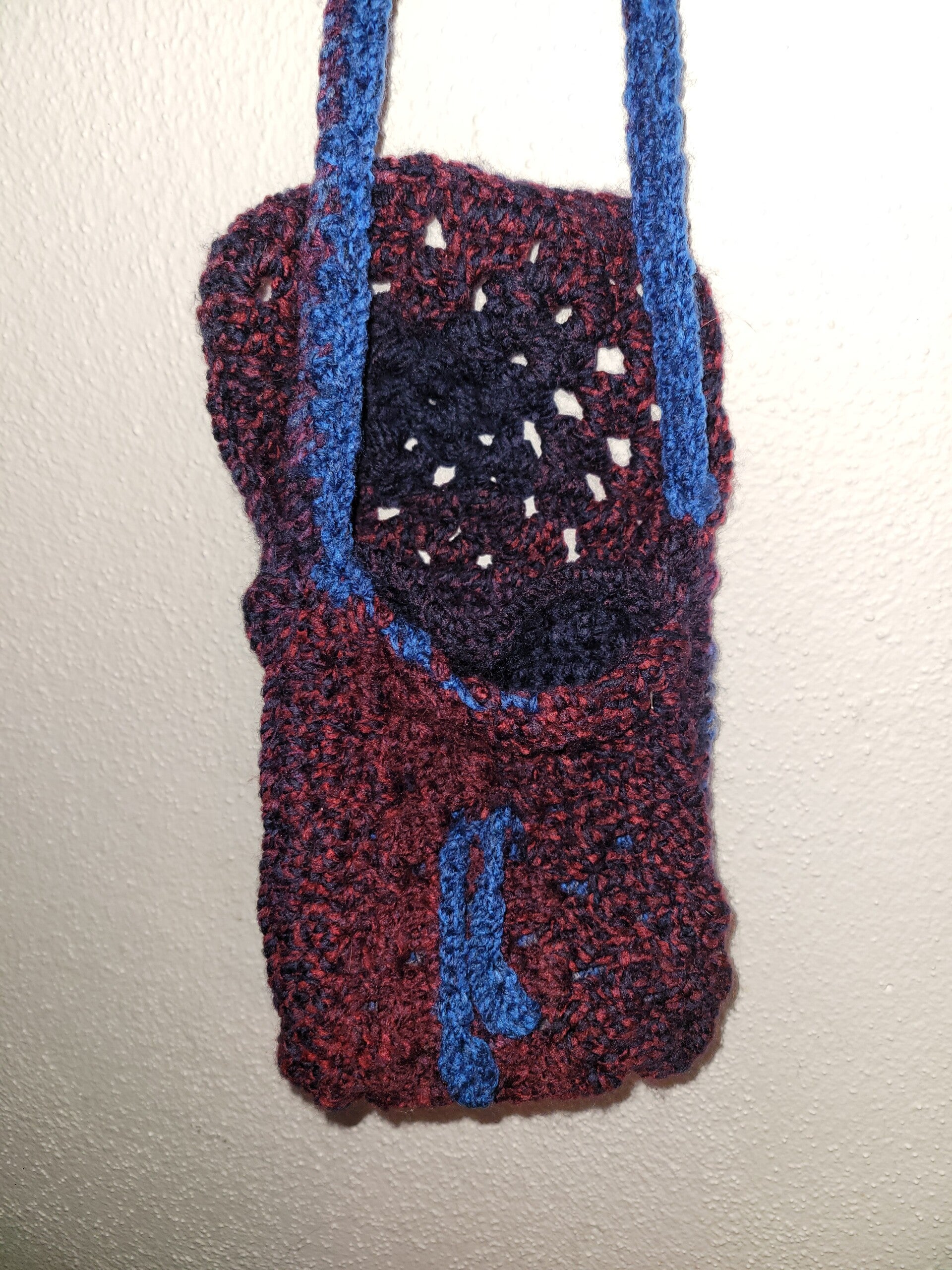 Big enough for what you need. Colorful and ties in front . Has an inside pocket